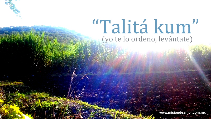 La tomó de la mano y le dijo: «Talitá kum», que significa: «¡Niña, yo te lo ordeno, levántate».