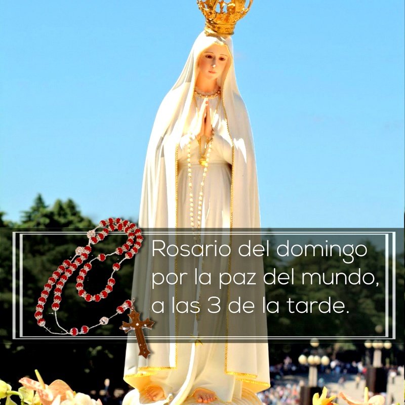 Mensaje de La Virgen María, Señora del Rosario, el 13 de mayo de 1917 “Rezad el Rosario todos los días para alcanzar la paz del mundo y el fin de la guerra”. Preparación: Al orar, deja de repetir muchas palabras sin conciencia, el rosario es una magnífica forma de abrir los ojos a la Fe. … Sigue leyendo Rosario del domingo por la paz del mundo, a las 3 de la tarde
